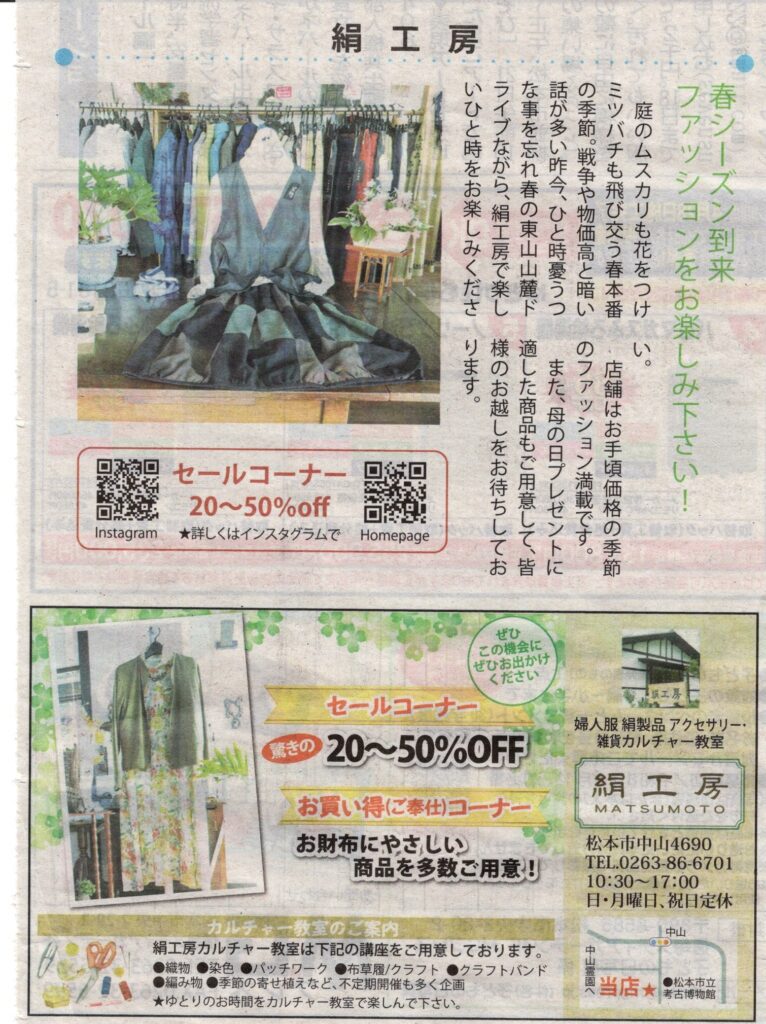 婦人服 手作りアクセサリー・雑貨 絹製品 カルチャー教室